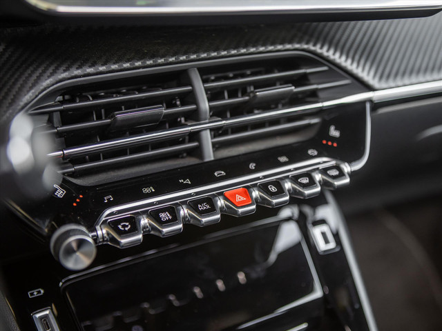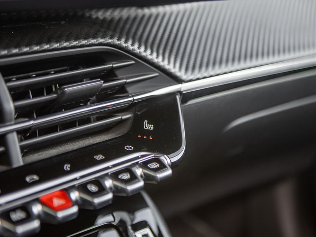 - Dashboard in zacht materiaal met carboneffect afgewerkt met groen stiksel, glanzend zwarte inleg en chroomeffect