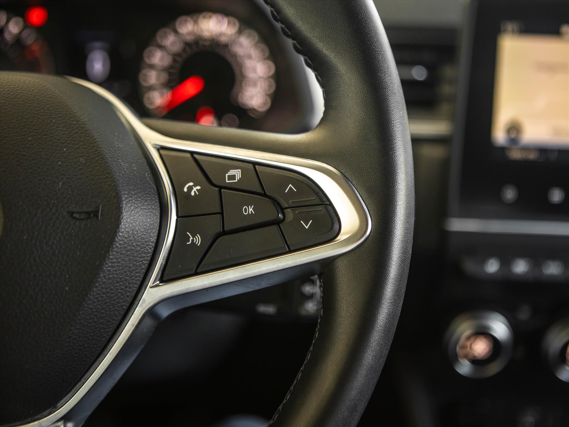 - Stuurwiel met TEP leder bekleed en bediening cruise control en snelheidsbegrenzer